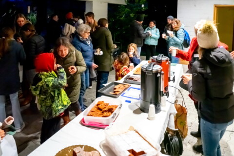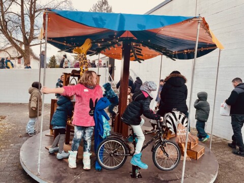 Und zum krönenden Abschluss des Abends lud der mit Glühwein, Punsch und köstlichem Gebäck reichlich gedeckte Advents-Tisch vor der Kirche die zahlreich anwesenden jungen Familien, Grosseltern und übrige Gäste ein, den Abend im Austausch und Kennenlerngesprächen auszuklingen. Und der Ausklang des Abends ging lange. Dafür sorgte nicht zuletzt auch unser Entfelder “Technikwunder”, das Karussell, welches Jung und Alt anzog.