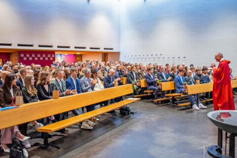 In seiner sprachlich geschickt auf die Firmlinge zugeschnittenen Predigt verglich der Firmspender Agnell Rickenmann die Gabe des Heiligen Geistes mit einer App, die dazu dient, den vor allem für junge Menschen heute oft unverständlichen «QR-Code des Glaubens» zu knacken, um den tieferen Blick in den Sinn des Lebens aus dem christlichen Glauben heraus zu gewinnen.