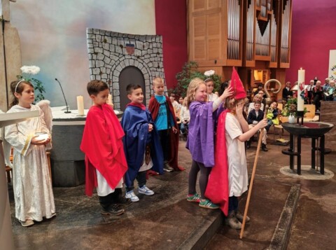 Am Heilig Abend feiern wir wie jedes Jahr einen Familiengottesdienst mit Krippenspiel. Der Gottesdienst beginnt um 17 Uhr in der Kirche. Wir laden alle Familien mit Kindern zu dieser Feier herzlich ein. Auch dieses Jahr haben sich zahlreiche Kinder für das Mitwirken beim Krippenspiel angemeldet. Sie üben fleissig für ihren Auftritt und freuen sich auf Ihren Besuch.