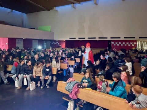 Im gemeinsam gefeierten Gottesdienst bildete sich schnell eine lange Schlange von Kindern, die ein Versli aufsagen wollten. Dies setzte sich auch draussen beim Feuer fort. Der Samichlaus harte geduldig aus und hörte sich Versli um Versli neugierig an und verteilte grosszügig Geschenke.