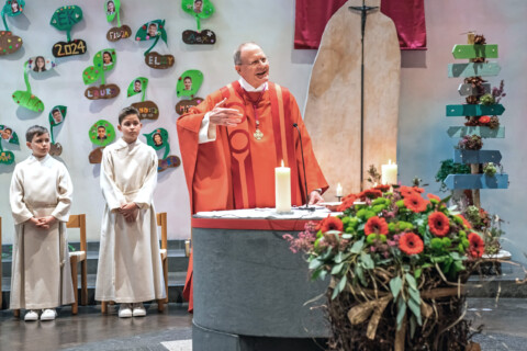 Wir freuen uns, auch dieses Jahr Dr. Peter Schmid als Firmspender in unserer Pfarrei begrüssen zu dürfen. Im Sakrament der Firmung wird der Firmand/die Firmandin enger mit der Kirche verbunden und vom Heiligen Geist gestärkt. Jeder und jede Gefirmte erhält den Auftrag, nun selbst das Evangelium von Jesus Christus bewusst in die Welt hinauszutragen. Wir werden mit 18 Firmandinnen und Firmanden, ihren Familien und Freunden sowie Pfarreiangehörigen am Sonntag, 16. November das besondere Fest der Firmung feiern. Musikalisch und gesanglich wird die Feier von Gunvor Meyer (ehemals Guggisberg, die Schweizer Vertretung beim ESC 1998 in Birmingham) umrahmt.